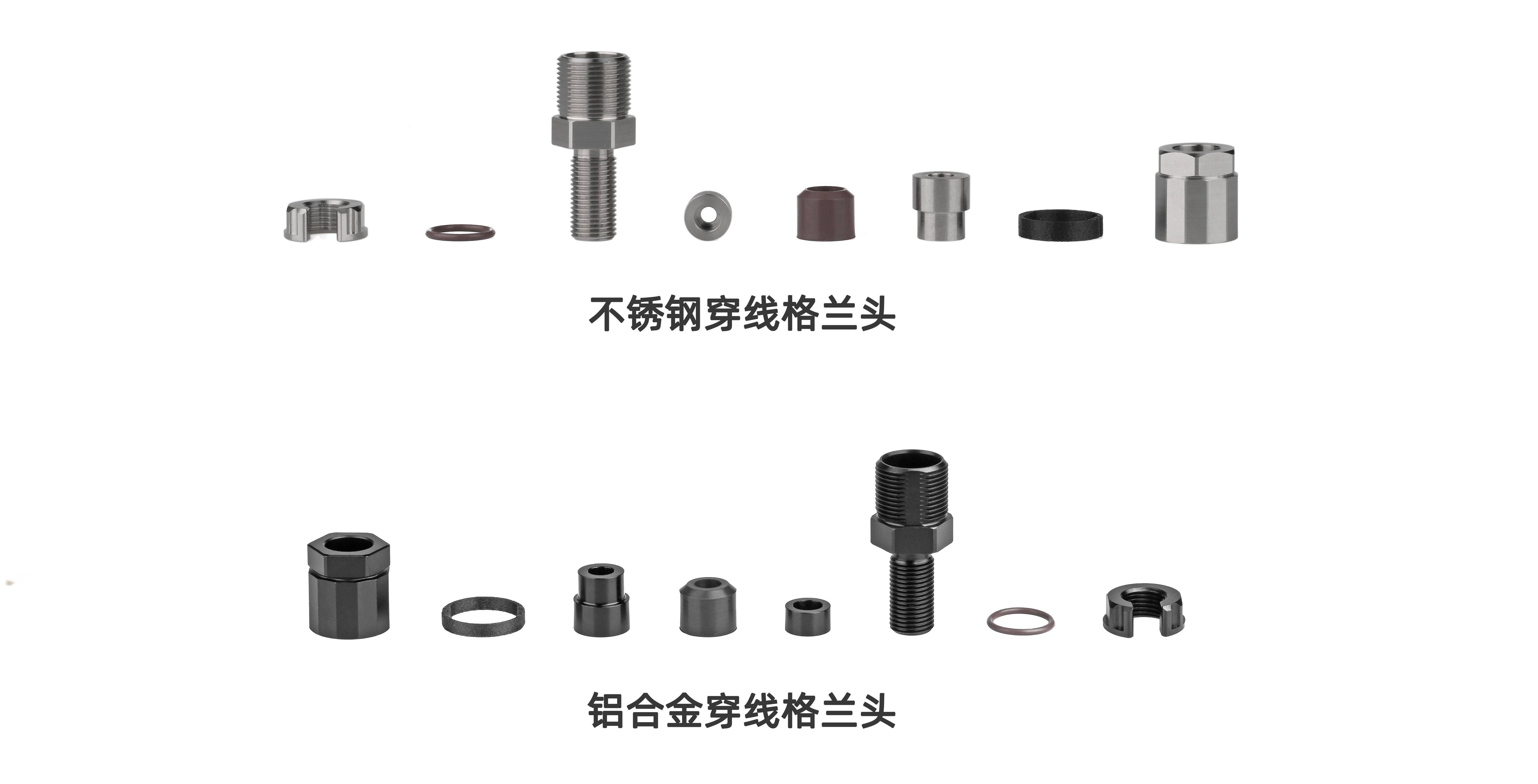 分体式的压塞和套环适配不同线缆,也可定制套环与螺丝本体一体从而减少一个零件降低批量成本。
