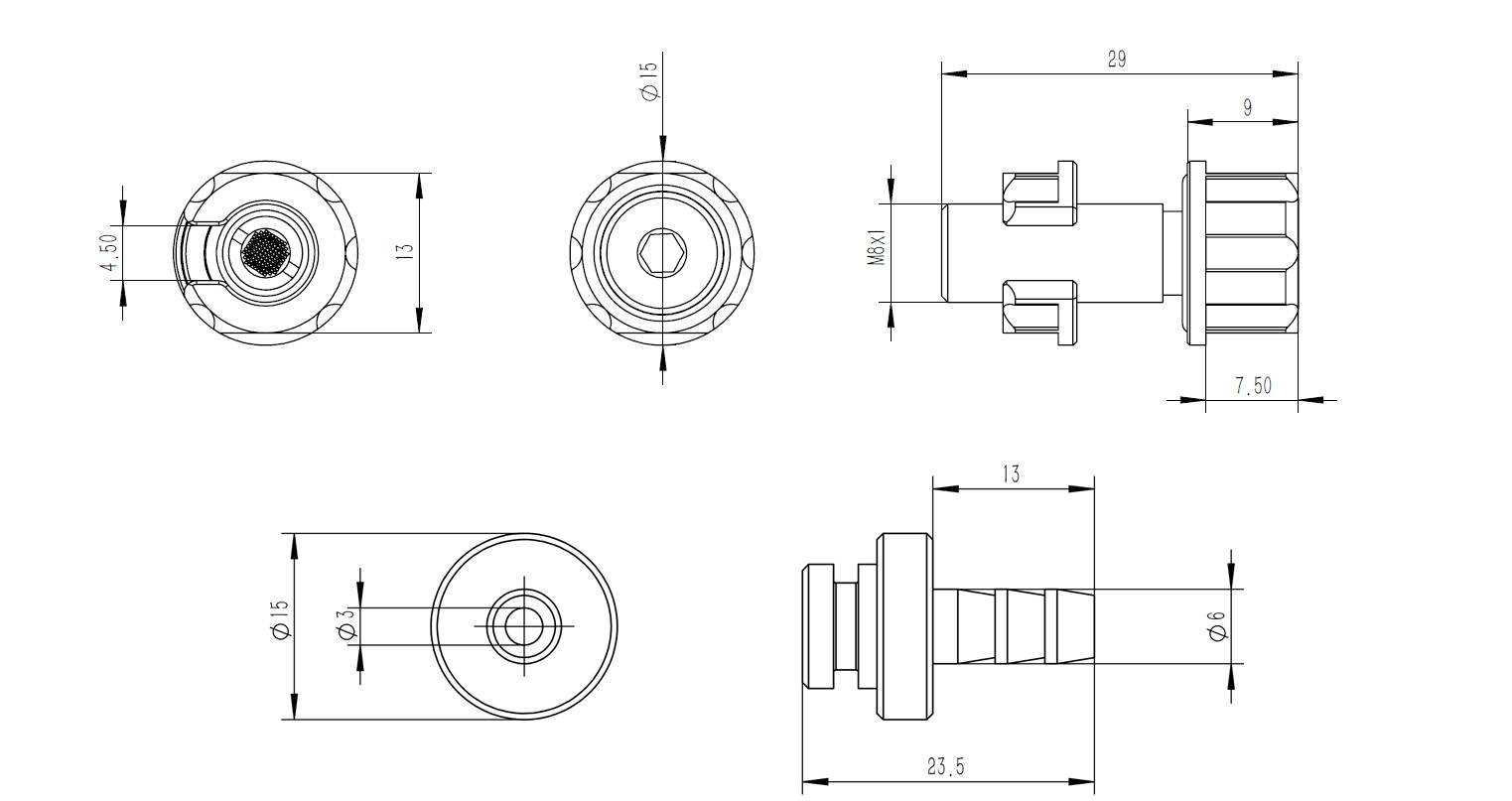 | M8排气螺丝抽真空气嘴 | 14010103-0018 | 铜 | 铜本色 | - | - |