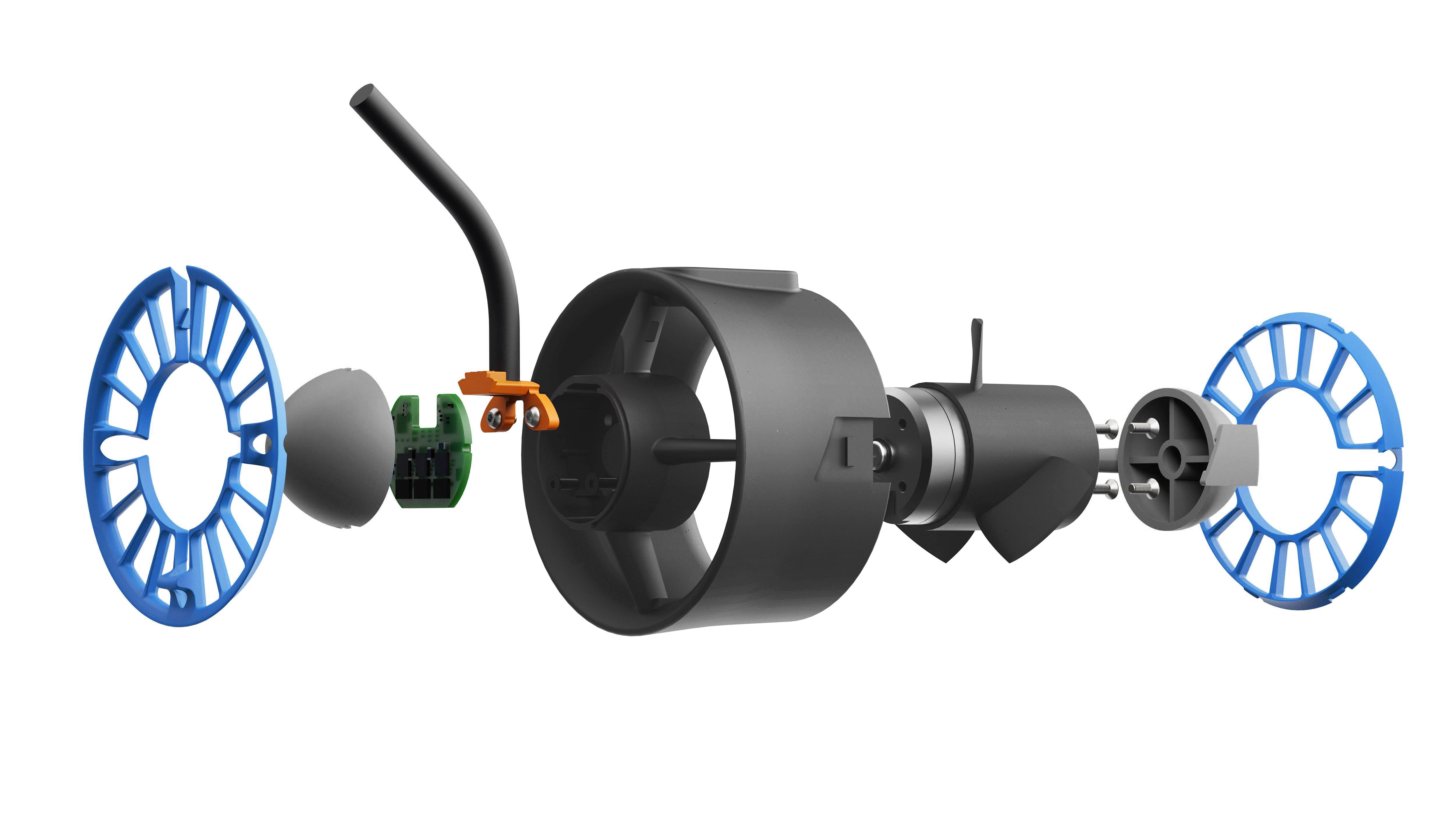 Z80E 水下推进器内是树脂隔离密封的无刷外转子电机,内部带有方波驱动,外转子直驱桨叶,广泛应用于水下机器人、无人船、水下助推器等水下设备,为其提供动力。