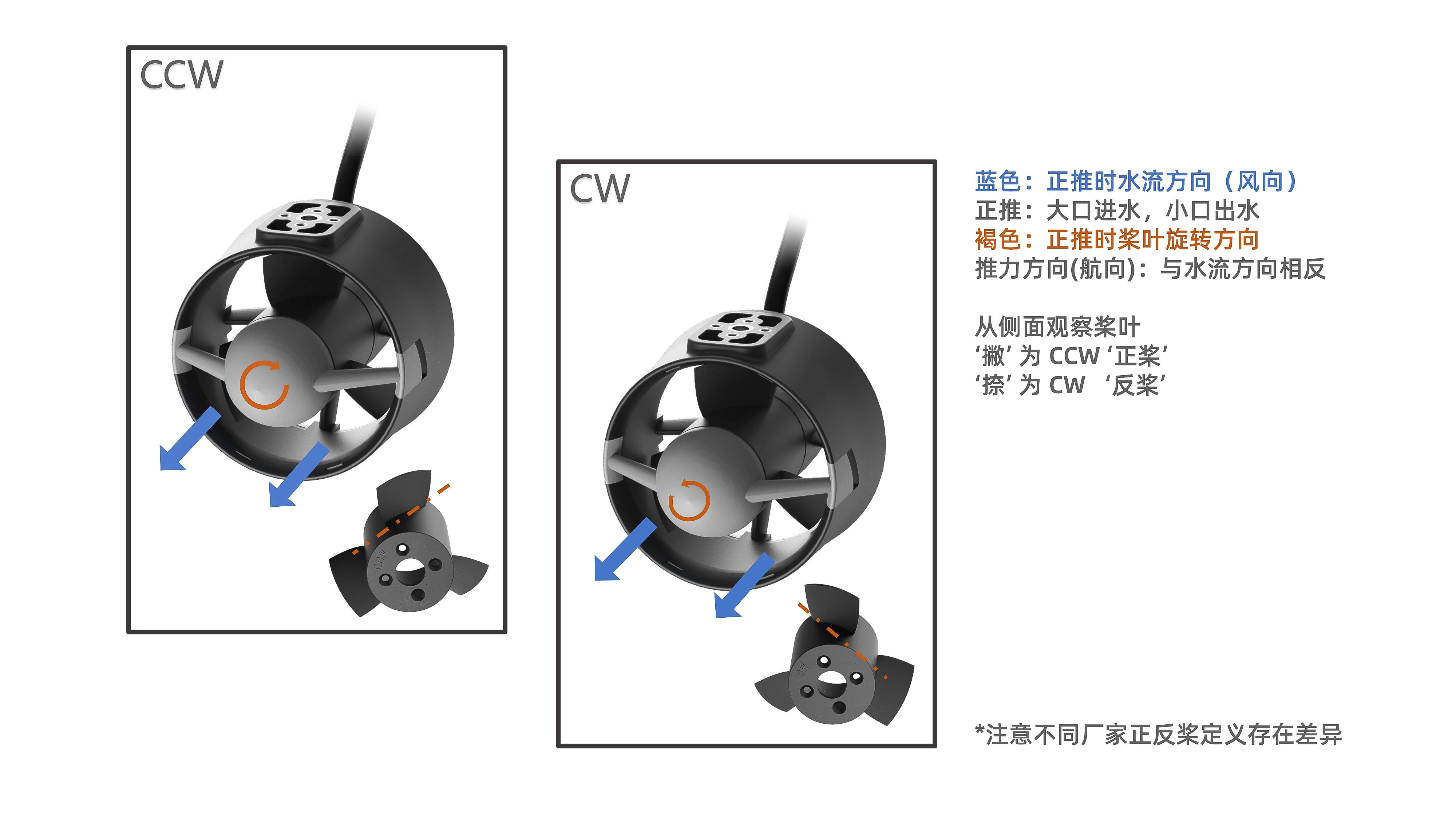 正反桨叶为镜像关系,一般用于平衡因电机旋转方向产生的有害转动力矩,例如前进方向都装正桨顺时针旋转时,会对设备产生一个逆时针的力。