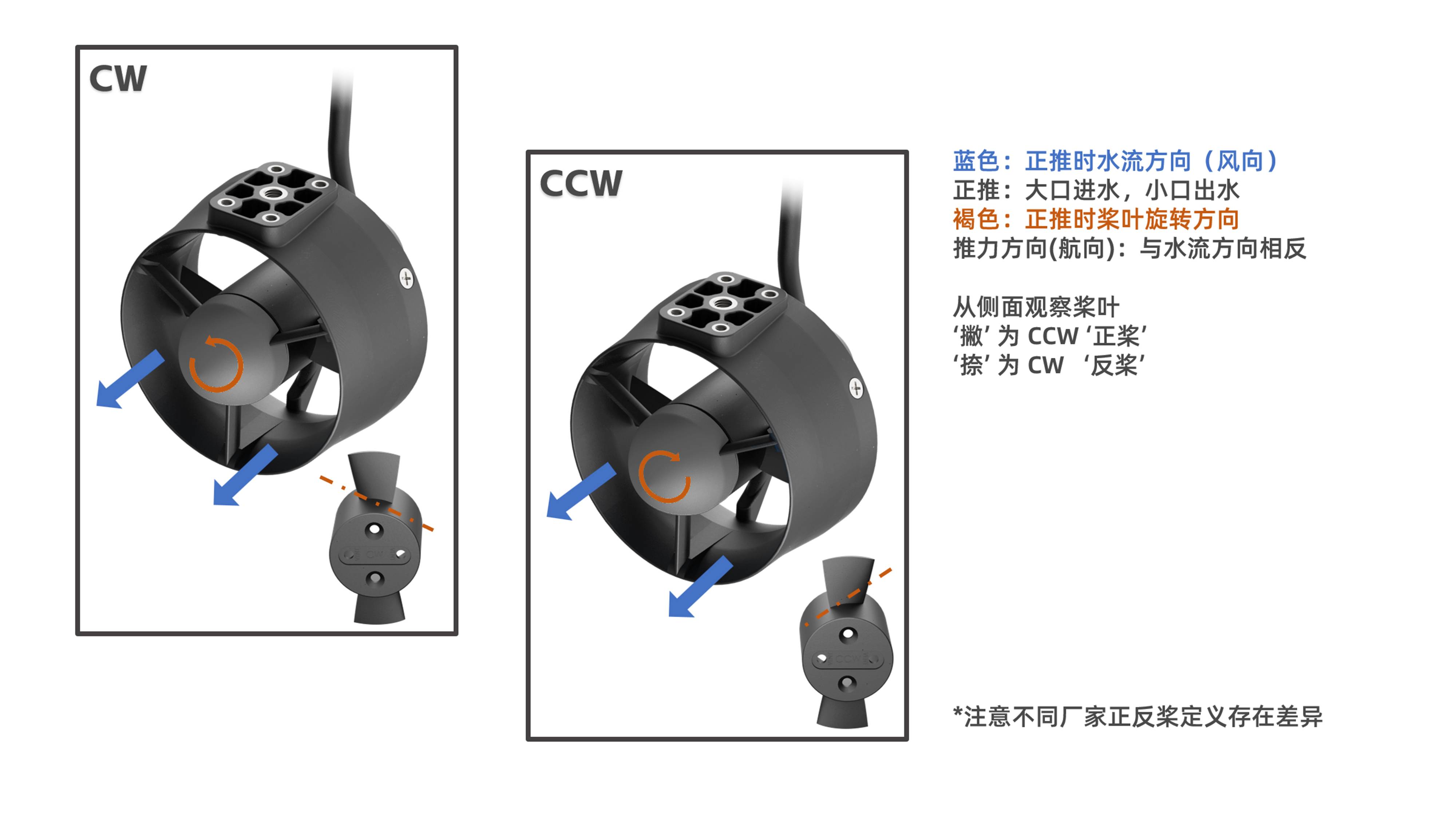 旋转方向,推力方向及正反桨方向说明: