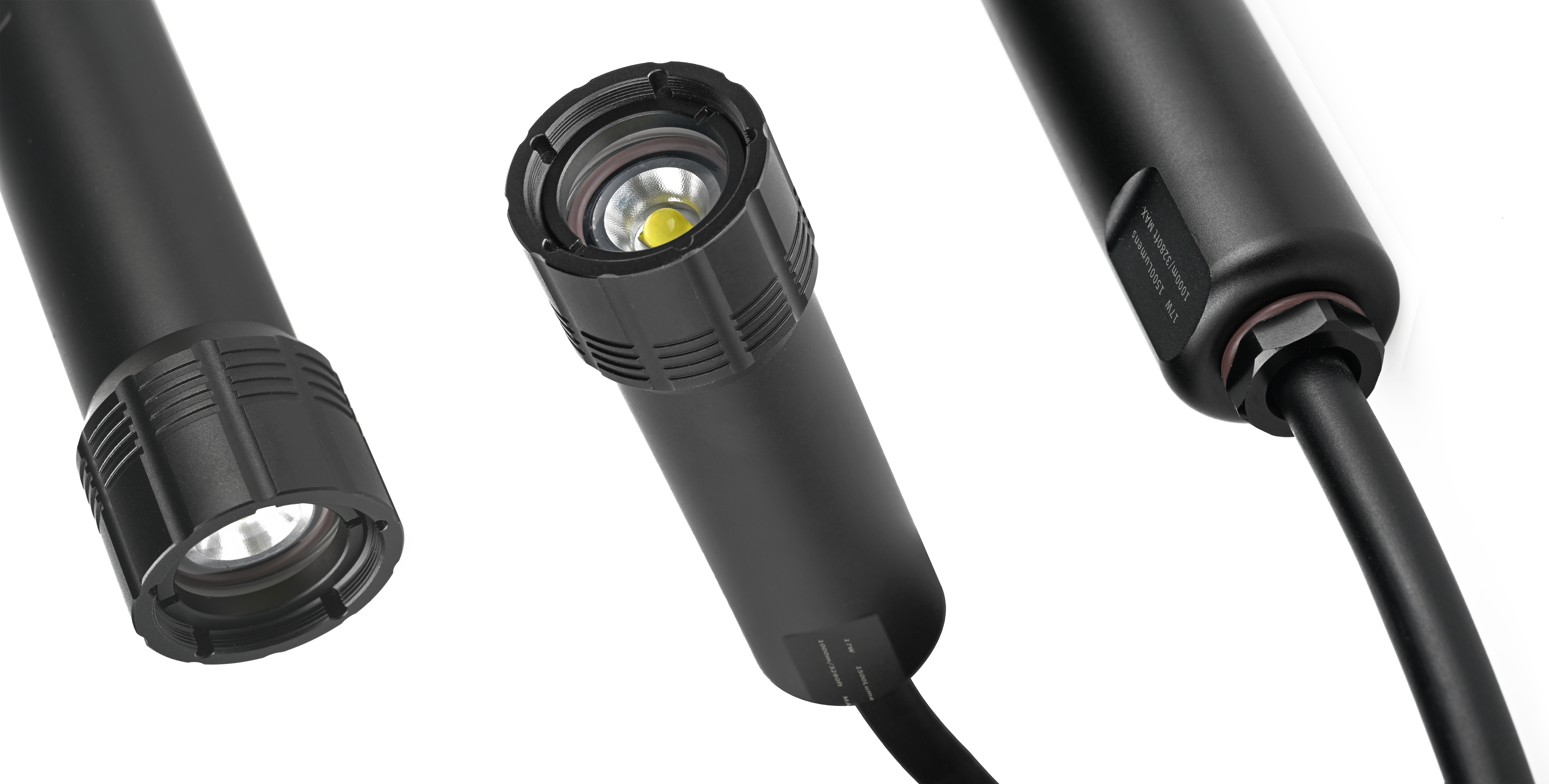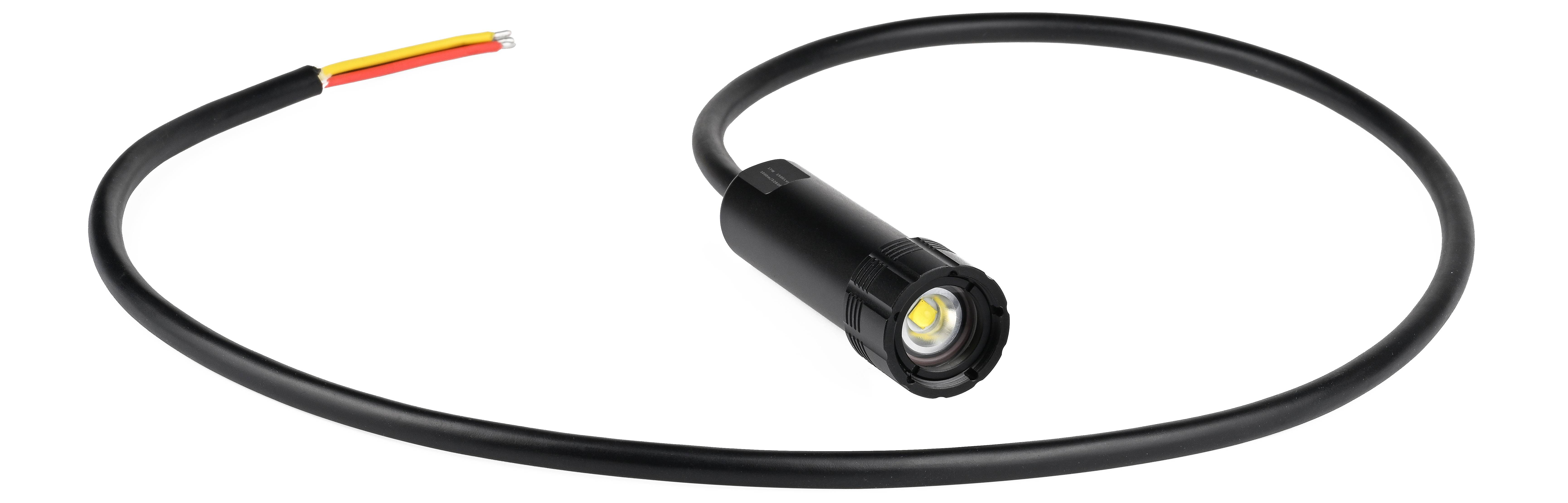 用于水下照明,全铝合金材质外部无螺丝,透镜为工业钢化玻璃,前端可安装25mm规格通用滤镜。老版本照明灯额定耐压深度300米,升级新版本额定耐压深度800米。本照明灯亮度为1500流明,均经过24小时的老化测试。